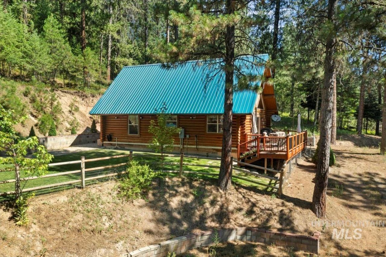 Beautifully maintained by its original owners, this charming log home sits on 1.54 private acres, offering peace and seclusion in a stunning mountain setting. A dramatic wall of windows fills the home with natural light and showcases serene timber views. The main level features two bedrooms and a full bath, while the loft?currently used as a third bedroom?includes its own full bathroom and flexible living space. Step outside onto the newer Trex deck to enjoy fresh mountain air and watch elk and deer pass by. The manicured grounds include a cozy firepit for starlit evenings, a garden area, and a storage shed for all your outdoor gear. With automatic sprinklers, community water, and year-round road maintenance, mountain living is both comfortable and convenient. Located just 60 scenic minutes from Boise, Garden Valley offers the perfect balance of adventure and relaxation, with nearby access to rafting, hiking, snowmobiling, trails, pickleball, and golf.