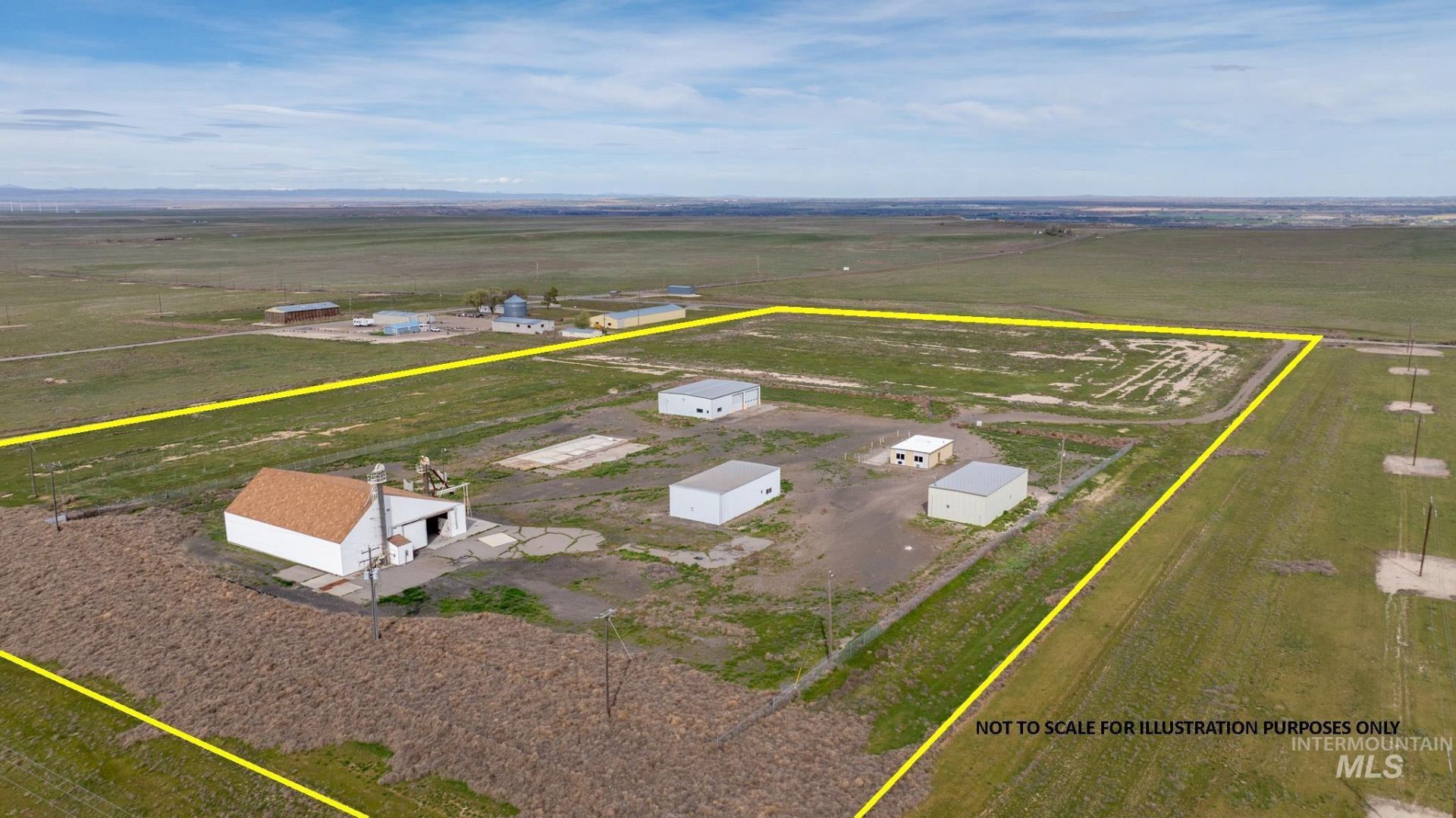 24+- acres of commercial/industrial land featuring 4 steel-frame and 1 with wood frame commodity buildings with metal roofs. The buildings are equipped with 14 overhead doors for efficient loading and operations. A secure 5+ acre chain-link fenced compound surrounds the main building area, providing security and controlled access. The property also includes IDWR industrial water rights. Building Sizes, 1. Shop 3,500+-SF.,2. Scale office 1,000 SF.,3. Shop 1,800+- SF, 4. Shop 1,800 SF, 5. Warehouse-Commodities 5,950+- SF. From Hwy 84 access 21 miles.